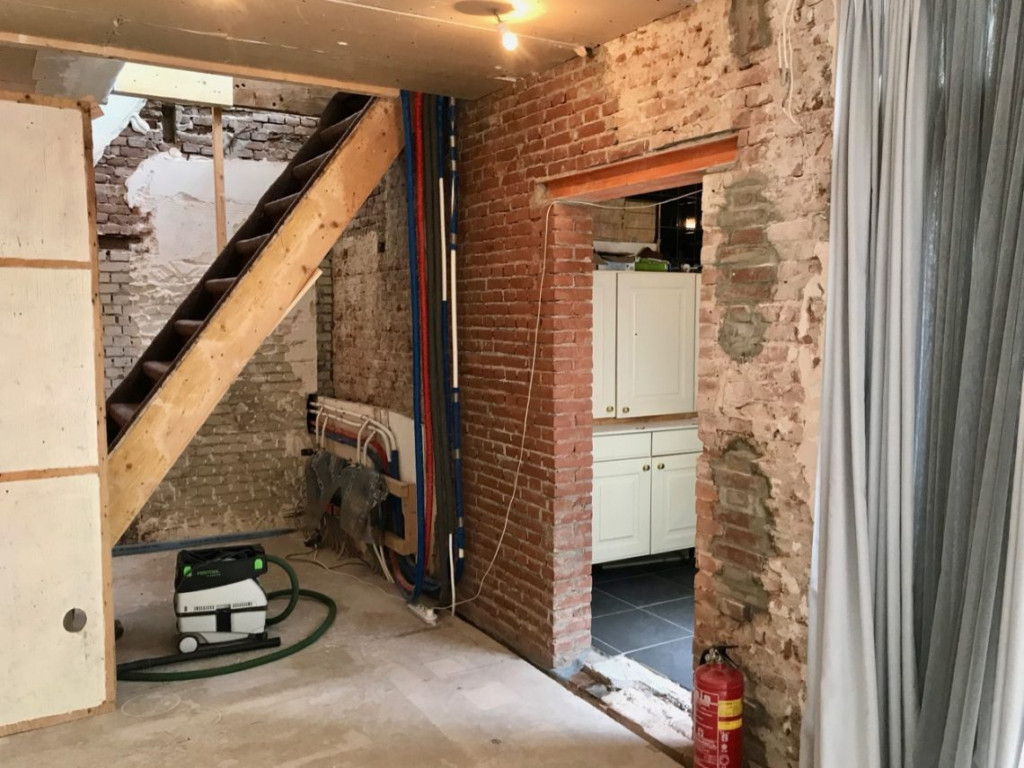 Toen ik vanochtend om 10 uur ons huis binnenstapte, was Marcin al een paar uurtjes bezig geweest. Mijn hele zelfgemetselde wasmachinekamermuurtje was al aangebrand, de bovenste helft van de muur was zelfs al beraapt en ik was net op tijd om hem de twee onderste stukjes te zien volgooien.