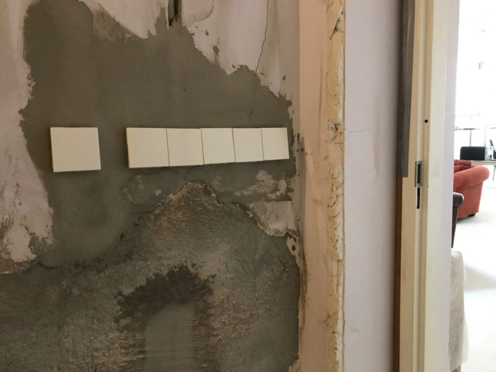 De grootste klus van de afgelopen tijd was de elektra klus. Inmiddels is alle elektra in de woonkamer aangelegd. We kunnen alle lampen schakelen vanaf de hal bij de voordeur, en sinds deze week ook vanuit de gang