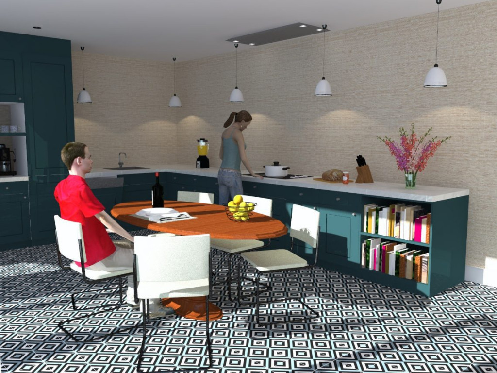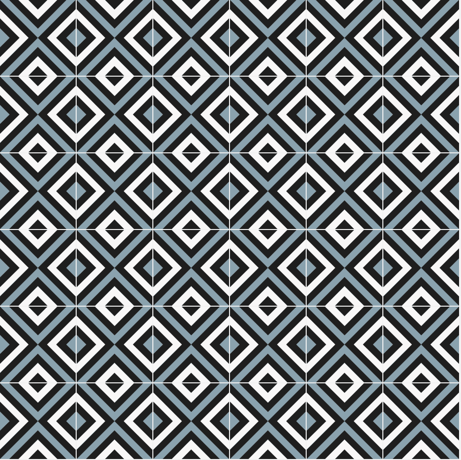 We hebben wat met de kleuren zitten puzzelen, en waarachtig, we hebben eindelijk een definitieve keuze gemaakt. Het wordt een gedurfd en zwaar patroon. Modern, maar het gaat vast en zeker ook lijken alsof de tegel er al 100 jaar ligt. Precies wat we willen. Het plaatje hieronder komt uit de Popham computer. De schoonheid van de echte tegel is er niet goed aan af te zien. De echte kleuren zijn straks alsof ze met schoolkrijt getekend zijn, een beetje “wazig”, aquarel-achtig
