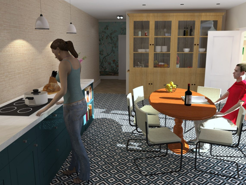 Omdat er toch wat tijd over was, heb ik de tegel meteen maar in onze 3D keuken gelegd.