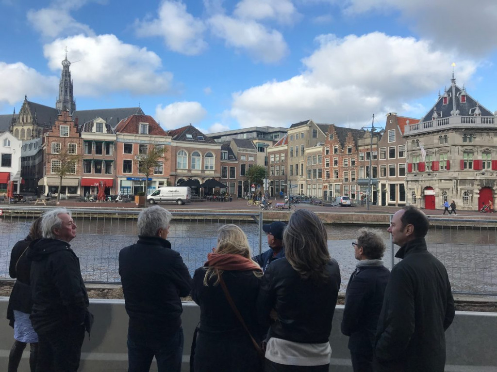 Daarna kwam, voor Hessel de verrassing van de dag, een heuse stadsgids langs om ons een rondleiding door Haarlem te geven.