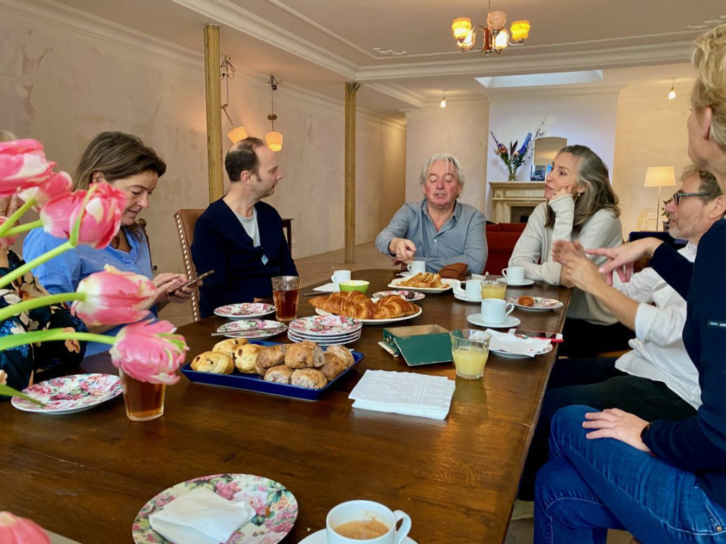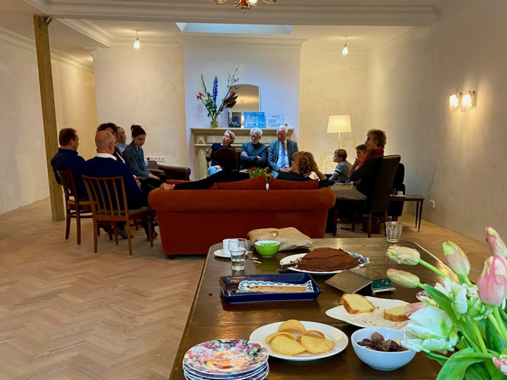 Dit weekend stond bomvol feest en ons huis was telkens het startpunt. Zaterdag vierden we eerst de 75ste verjaardag van mijn moeder. Met ons gezin en ooms en tantes verzamelden we ons op de Kleine Houtstraat. Iedereen vond de vloer ge-wel-dig (ik denk ook niet dat iemand zou zeggen ‘nou, best lelijke vloer’) en we pasten met groot gemak allemaal in een kring rondom de open haard.