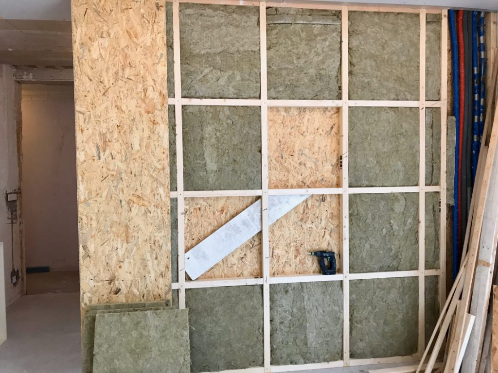 Ik pakte ik de versteviging in met rockwool en schroefde de OSB- platen er tegenaan.