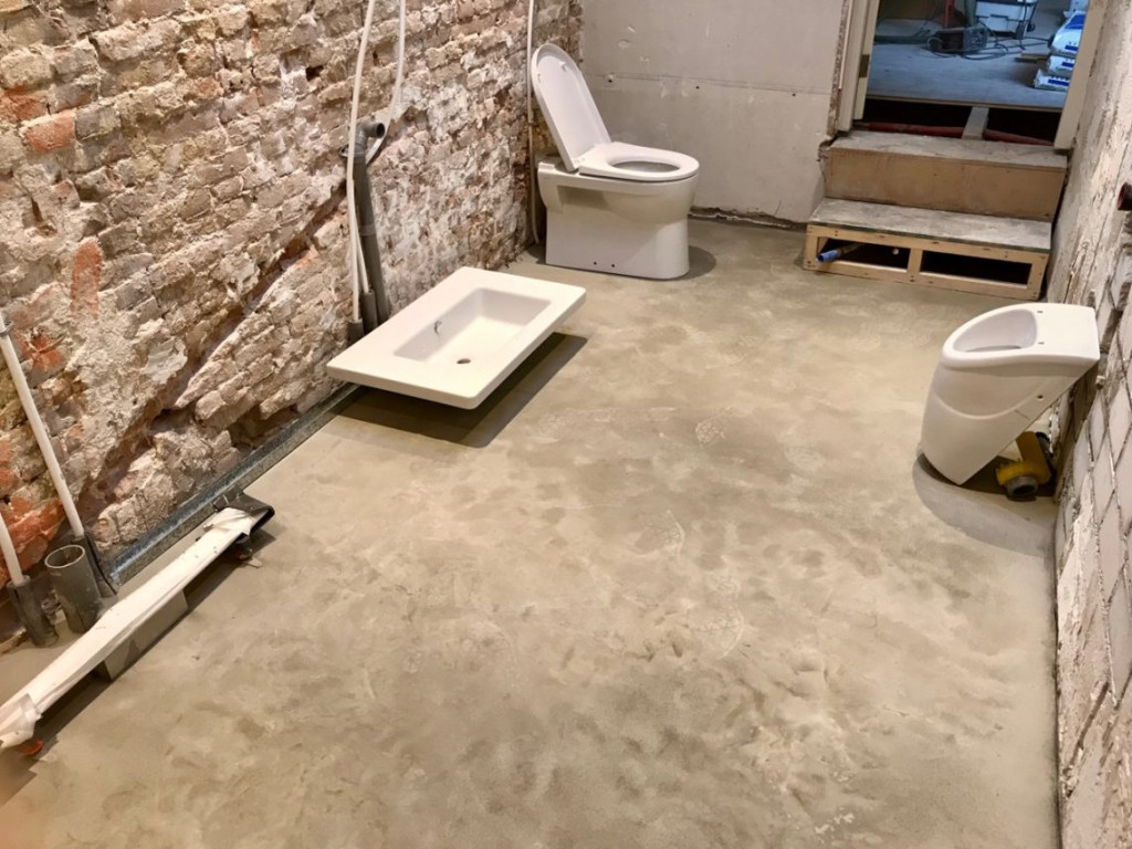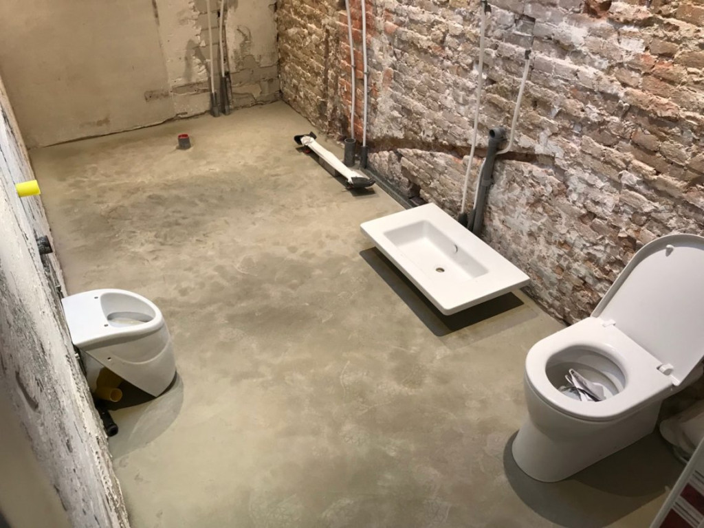 Nu nog even de vloerverwarming er in, dan een zandcementlaag erop, een muurtje achter het sanitair bouwen, tegels uitzoeken en zetten, en klaar is Kees.