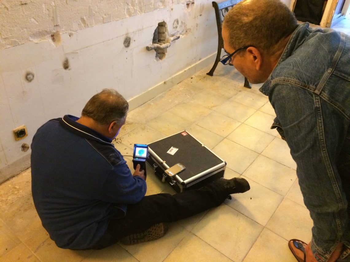 Door het gaatje wat hij boorde, stak hij een mini camera, die hij op afstand kon bedienen. We hebben tot ruim een meter onder de vloer rondgekeken.