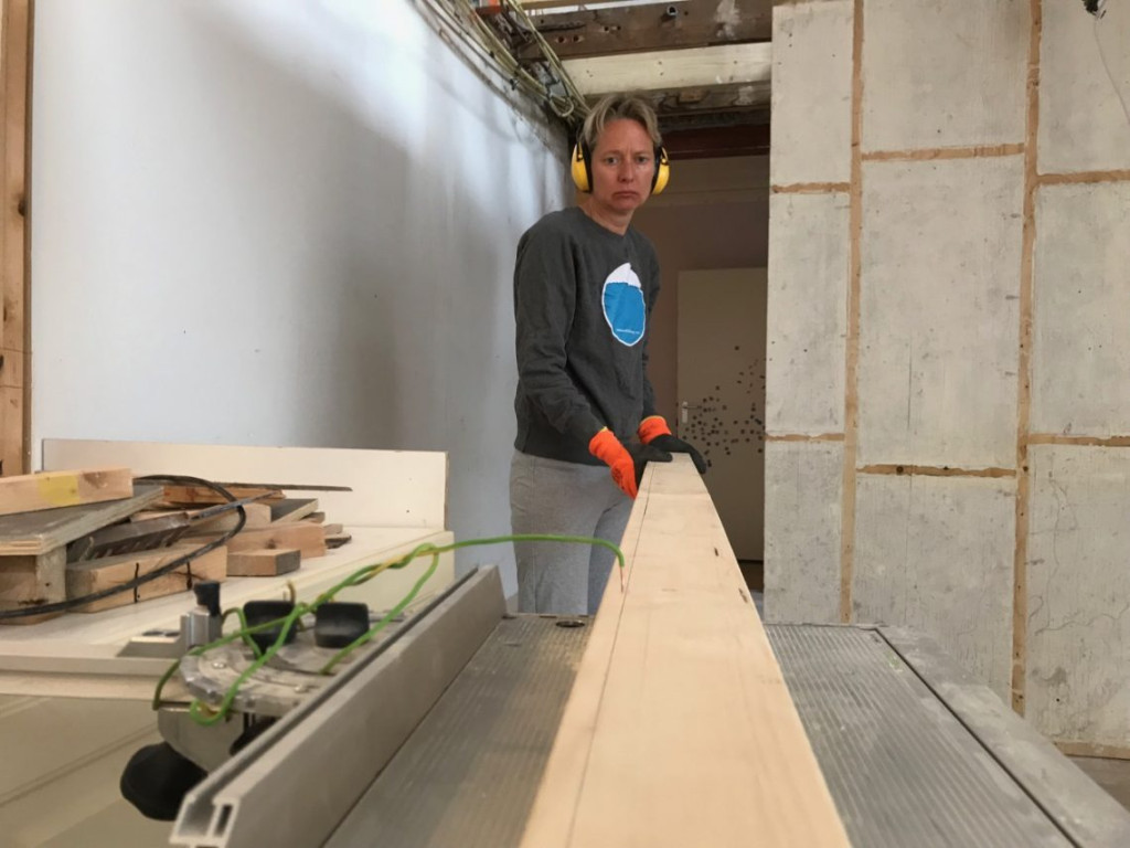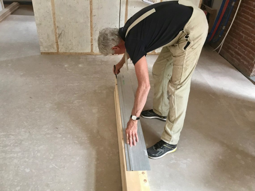 Dat is niks voor Hessel, maar het was geen probleem de balken nogmaals te zagen. Go with the flow zeggen we dan. De eerste balk die hij vervolgens ging plakken klopte. Lijm op de ondergrond…
