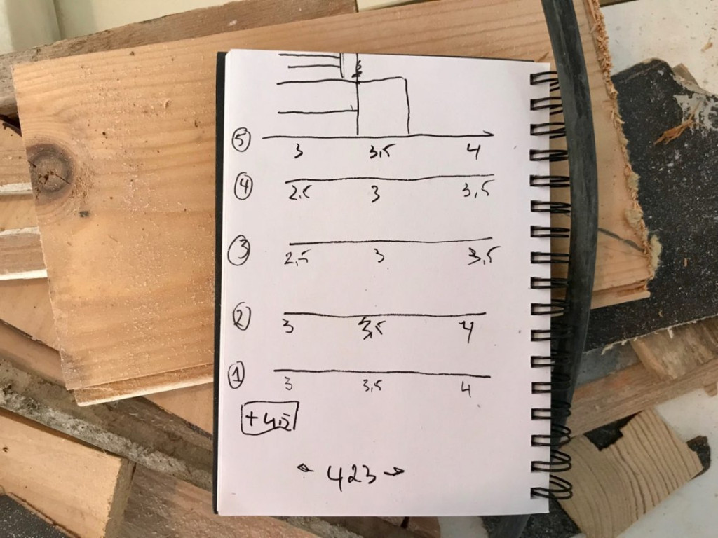 Gek genoeg bleken de volgende balken echt helemaal niet te passen qua centimeters. Ik vond het heel erg gek, en ook een beetje spannend want dit is niet eerder voorgekomen. In de tuin hoorde ik Hessel in zichzelf praten en rekenen.