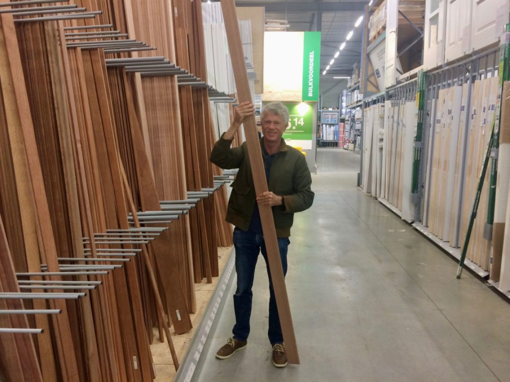 Deze dagen mogen we elke dag de verwarmingsinstallatie 5 graden hoger zetten (ik zeg ‘mogen’ omdat ik het woord ‘moeten’ wil vermijden. Punt is dat als we het niet doen, de hele vloer en alles wat er bij hoort kapot zal gaan..), zodat de vloeren kunnen wennen aan warmte en later ook weer aan koude. Ik had best zin om even mee te gaan. We gingen ook een lat bevestigen tegen de bovenkant van het buitenraam aan de voorkant, zodat die meteen meegeschilderd kan worden een dezer dagen. Eerst naar de Bouwmaat, om een geschikte lat uit te zoeken. De medewerkers juichten Hessel nog net niet tegemoet, maar ze kenden hem duidelijk wel en durfden niet te vragen of die blonde vrouw z’n vriendin, zus of echtgenote was.