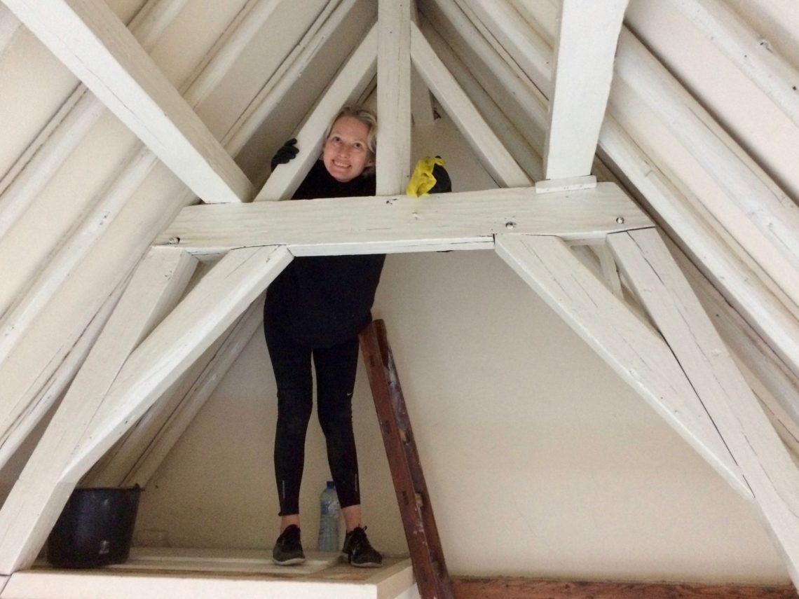 Deze ochtend werden we wakker na drie leuke dagen met drie kerstdiners en deep down waren we best blij dat het gewone leven weer begon. Allereerst gingen we naar mijn ouders om de ‘apothekerskast’ die daar onder de vleugel lag op de halen met de auto. Even de nabeschouwing van het kerstdiner en gezelligheid en toen moesten we door. We kregen de kast (loeizwaar) samen uit de auto in in de keuken in Haarlem. Vervolgens ging ik naar 79 rood met een nieuw fles St Marcs en 3 flacons ‘Mr muscle’-achtigen. Het was de Grote Schoonmaak. We hadden vorige week al gezien dat een van de twee slaapkamers heel erg stoffig was en eigenlijk gewoon vies op de balken en ik kon niet wachten dit schoon te soppen. Ook een beetje in de hoop dat we de nok dan niet hoeven te schilderen (qua hout en latex) want dat kan nog een klus worden omdat het zo hoog en zo onhandig is.