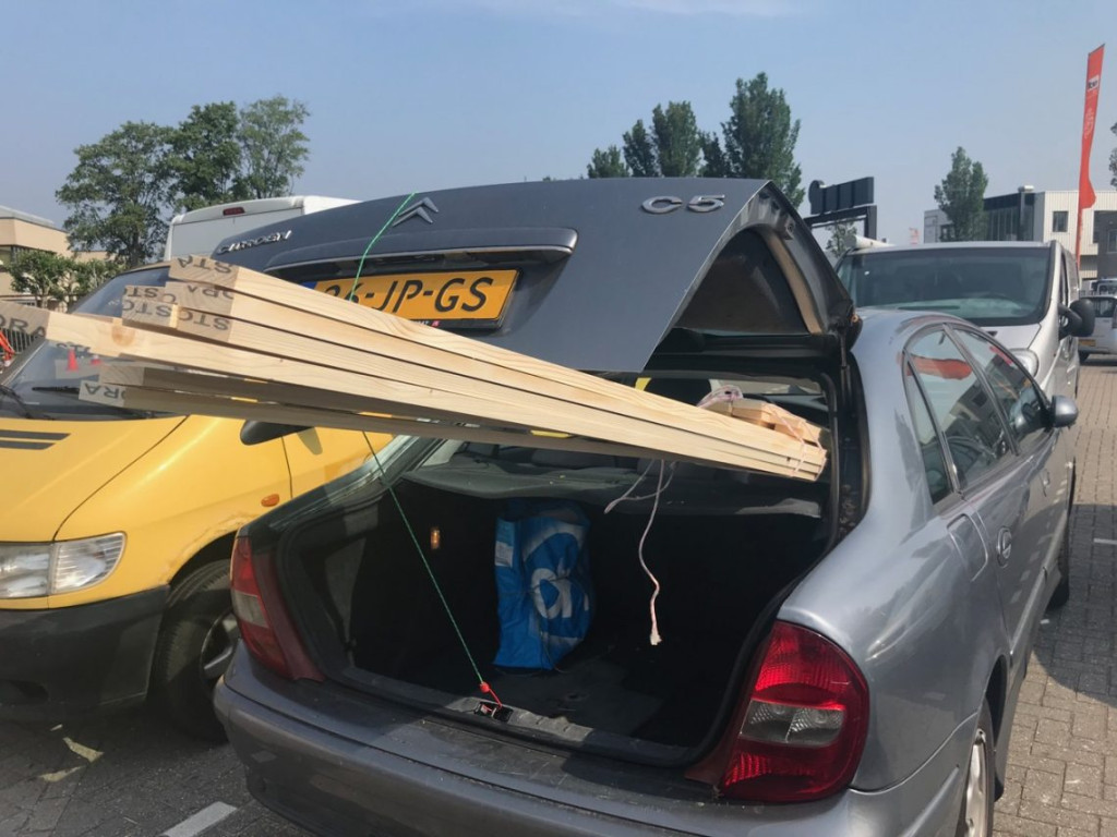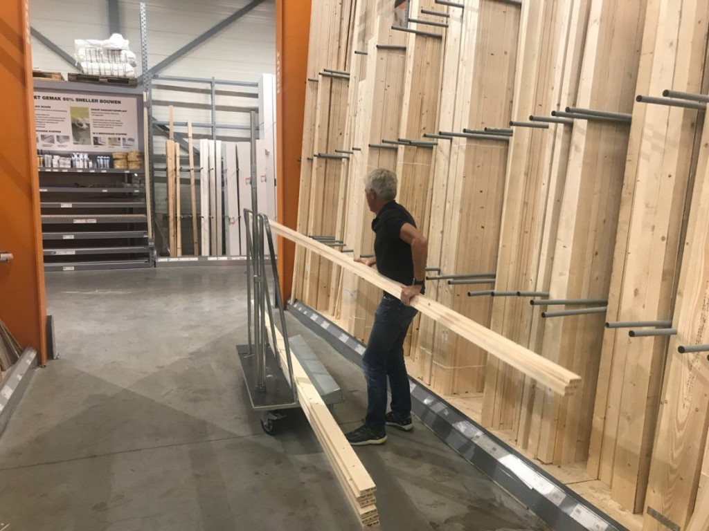 Eerst gingen we naar de Bouwmaat om hout te kopen voor het plafond.