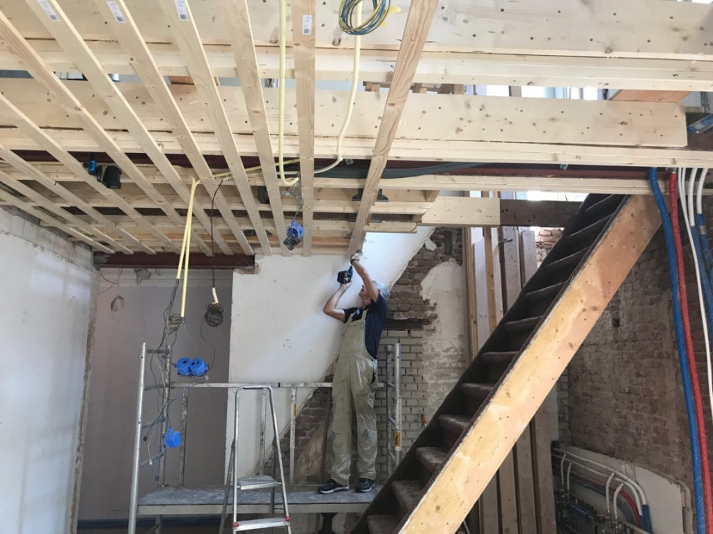 Hessel was ondertussen al drie keer naar Van de Boogaard gelopen voor leidingstukjes. Ik ging even uitrusten toen hij nog bezig was en viel bijna op de bank in slaap. Rond 17.00 was Hessel ook klaar en hadden we gewoon een heel plafond inclusief afvoer gereed! Ik vond het geweldig.