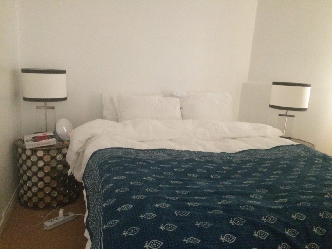 Omdat we gisteren niet 100% zeker wisten wat de maten zijn van mijn bed, heb ik dit vanmorgen meteen even opgemeten. Mijn ge-wel-dig lekkere bed, gekocht bij Het Westen aan de Bilderdijkstraat, waar ik nooit meer zonder kan is 160 cm x 200 cm.