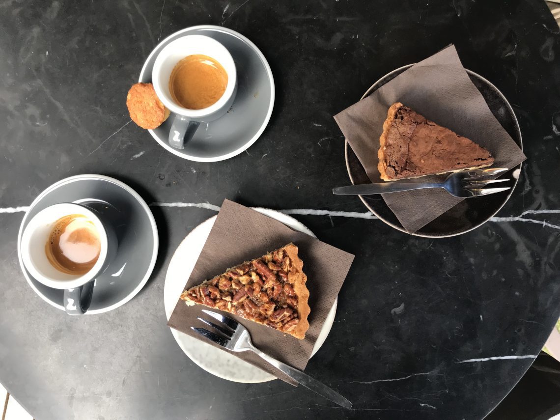 We vervolgden onze route in slow motion naar de Botermarkt. Daar is biologische markt op vrijdag. We dronken een koffie op de kop van de markt met taart erbij. Dat helpt eigenlijk tegen alles. Hessel zei: je kan me hier later gewoon een hele dag parkeren met m’n karretje en me rond 17.00 uur weer ophalen. Zo heerlijk om naar al die leuke mensen te kijken die voorbij komen.