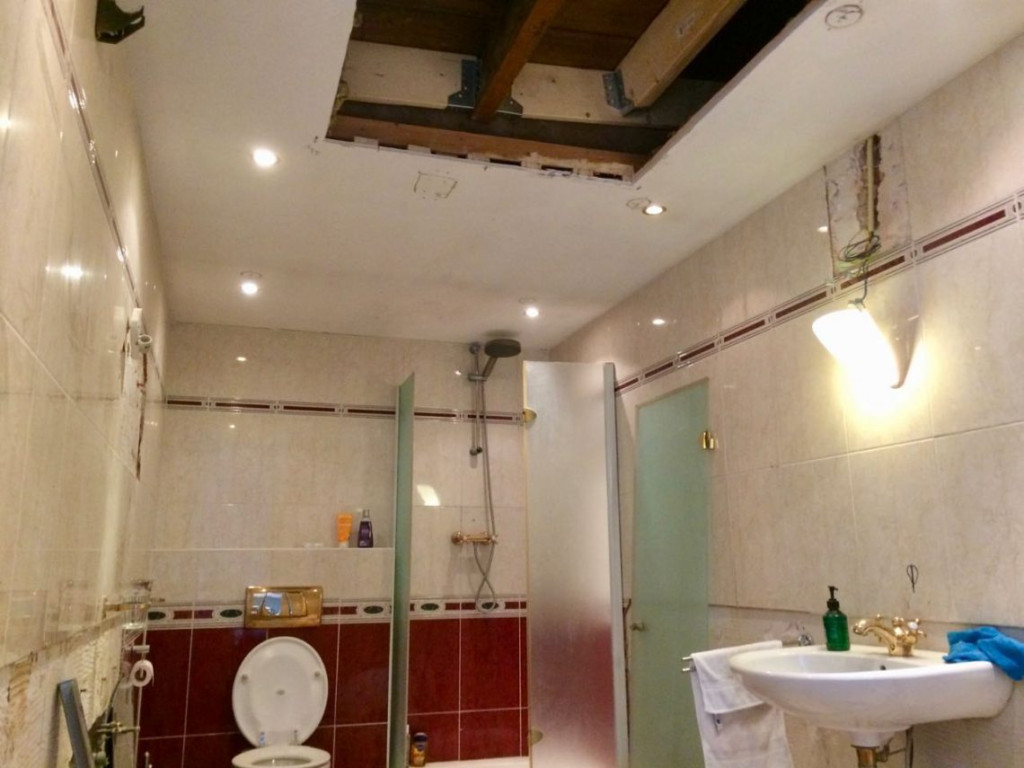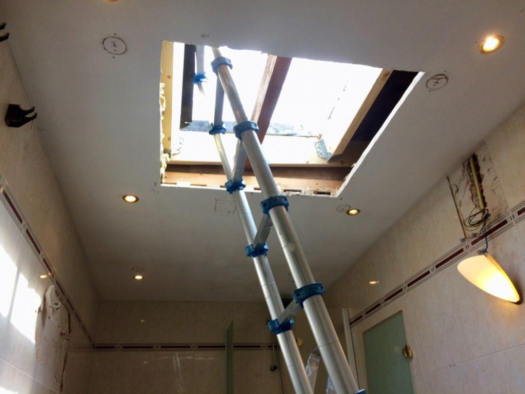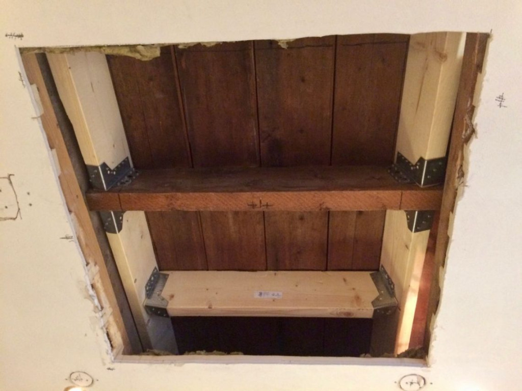 Ze zitten schuin in het plafond, want het gat gaat straks ook schuin wijduit vanaf het dak naar het plafond toe lopen.