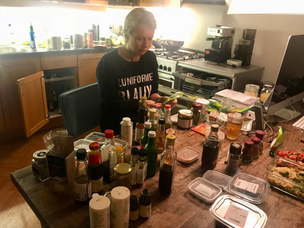 Vrijdagavond heb ik besteed aan het opruimen van de keukenkastjes. Bij Hessel thuis is niet onwijs veel ruimte, en ik heb inmiddels wel onwijs veel kruiden en wekpotten met van alles en nog wat. Soms wordt het zo’n troep dat ik geen overzicht meer heb. Nu ging ik dus alles uitzoeken en proberen te sorteren op “wat ik minder nodig heb”. Helaas heb ik alles elk moment van de dag accuut nodig. Dus het werd een lastige klus. Het is trouwens wel gelukt, maar ondertussen zette ik alles al in de mega keuken in Haarlem in gedachten. Zo veel ruimte; dat zal toch echt het Walhalla zijn. Zelfs Ottolenghi zelf heeft niet zo’n grote keuken denk ik.