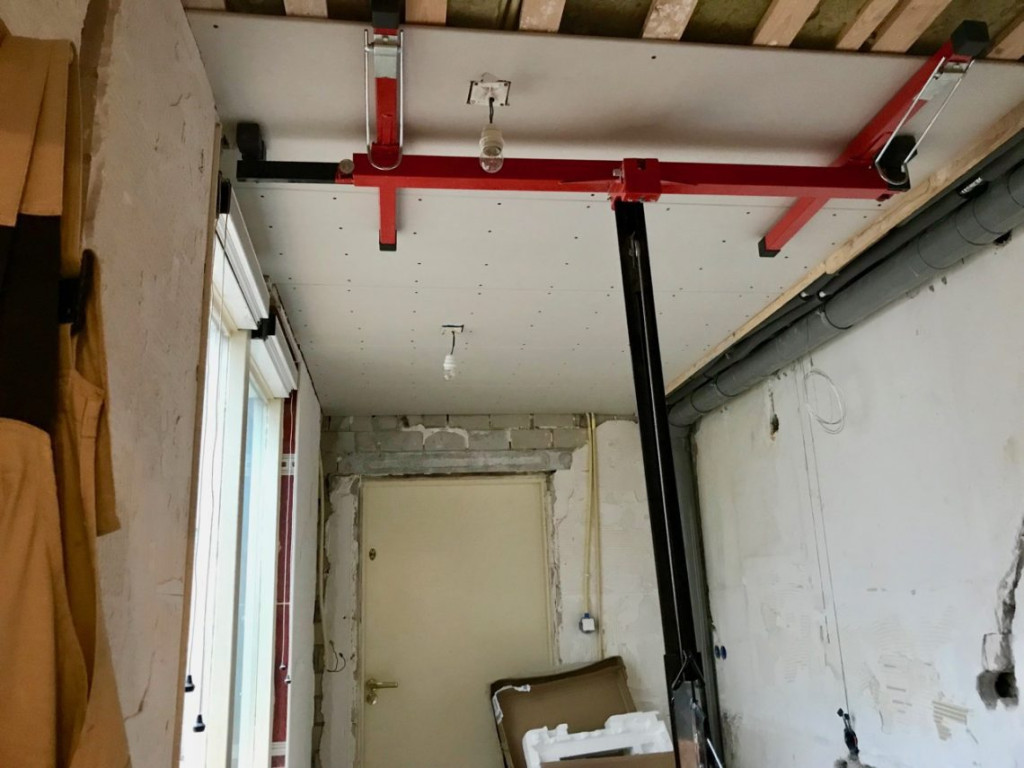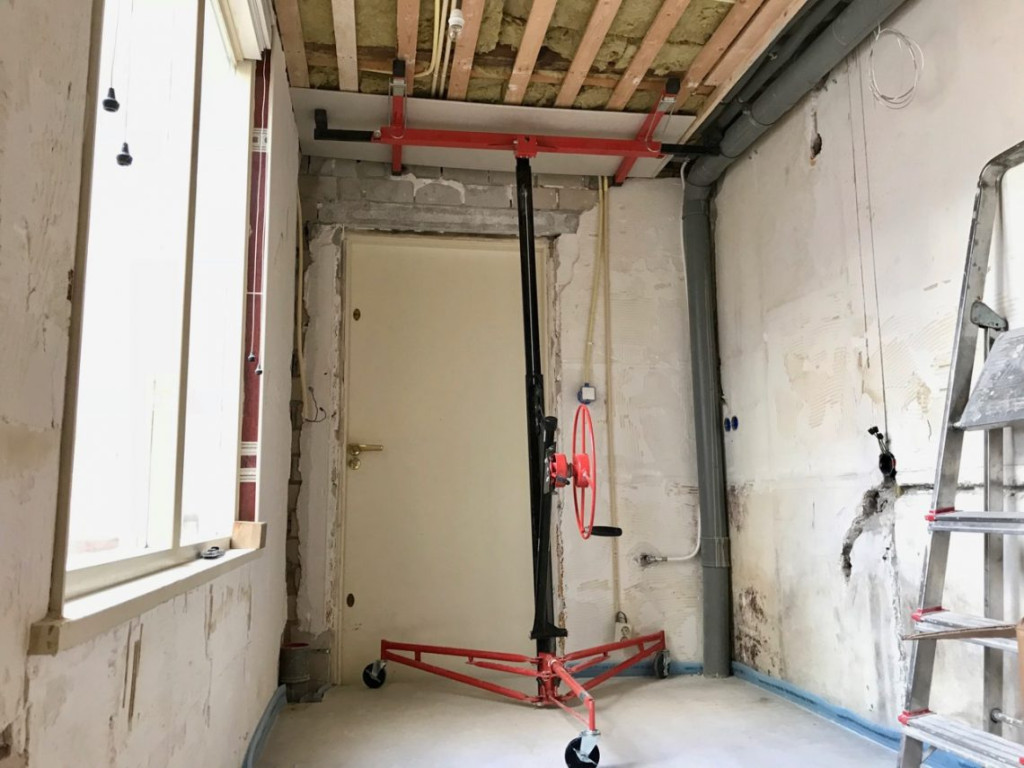 Toen ik weer thuis was, werd het eindelijk tijd voor de platenlift. We willen nog voor zondag de bijkeuken als opslagkamer gaan inrichten, zodat de echte keuken schoon en leeg kan zijn. Maar voordat ik alle troep ga verhuizen, wilde ik absoluut dat het plafond helemaal dicht zou zitten. Dat gaat zeker lukken, weet ik nu. Het was een werkje van niks.