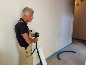 Terwijl ik het koper aan het vermoorden was in de ‘woonkamer’ ging Hessel verder met de electra in o.a. de keuken. Op basis van zijn lichtontwerp worden met een laser op alle juiste locaties electrapuntjes gemaakt.
