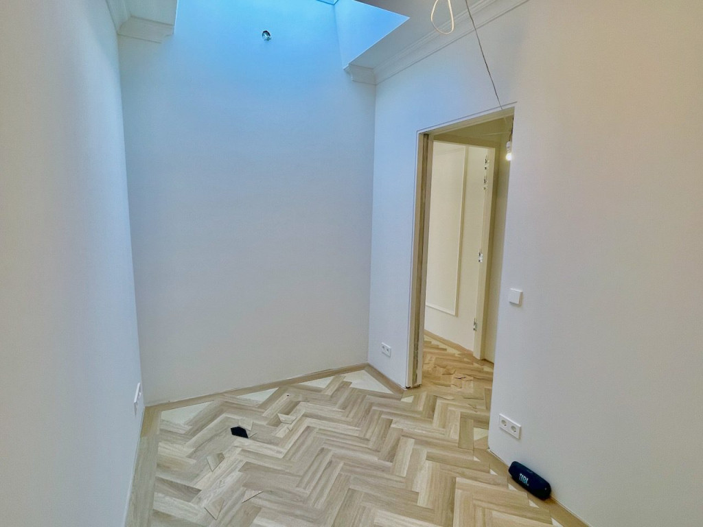 We wilden graag een visgraat op de vloer van het Theater. Iedereen wil tegenwoordig een visgraat, maar we wilden niet zo’n hele grote. En we wilden geen echt hout. Want als het Theater huurders zou krijgen en die huurders knoeien nonchalant met rode wijn en tomatensoep dan is dat best zonde op echt hout.