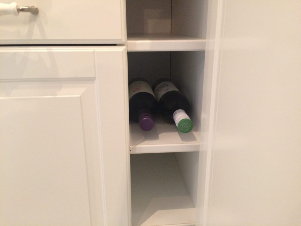 Alle losse spullen weggehaald…En ik sopte nog eenmaal de badkamer (verfspatjes verwijderen) en de keukenkastjes van binnen.