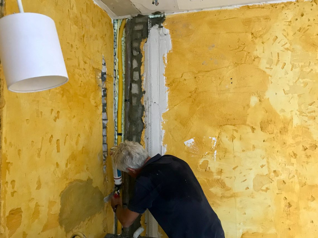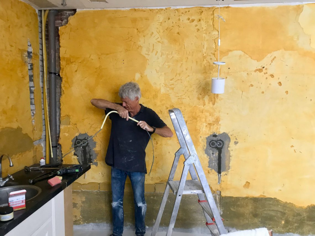 Maandag werd er dus hard doorgewerkt om de Polen door te kunnen laten gaan. Hessel moest in de keuken de laatste elektra leidingen aanleggen. Zodat die ’s nachts konden harden.