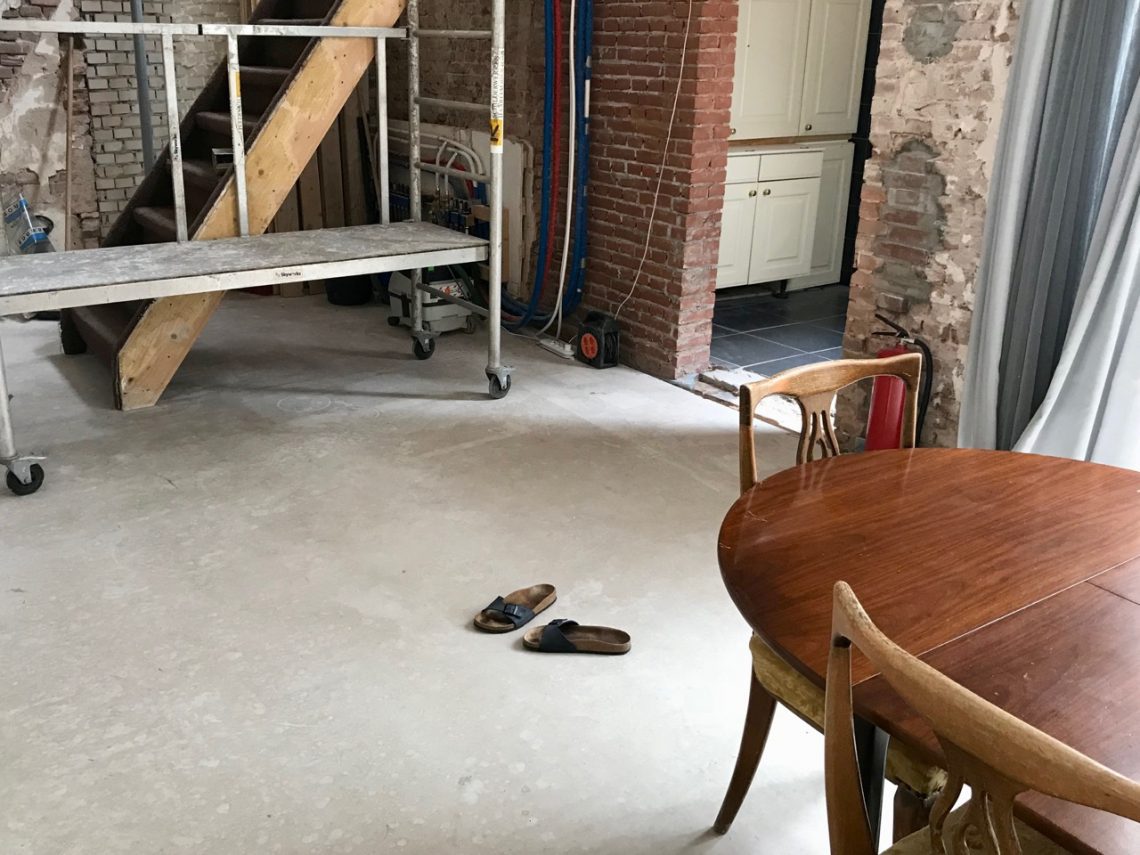 Vervolgens gingen we naar de stort om alles weg te gooien. In de auto zei ik dat het me opviel dat we al zo lang niet meer naar de stort zijn geweest. Dat komt natuurlijk omdat de sloopfase er bijna helemaal op zit. We komen in de opbouwfase. Dat is toch een leuke constatering! Hop, daar gaat ons plafond: tot nooit meer ziens.