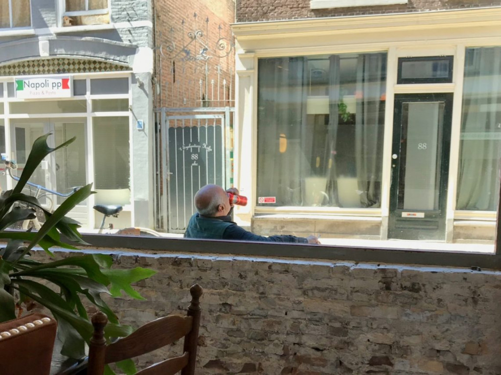 Nou ja, iedereen? Iedereen behalve mijn bankzitter dan. Hij pakte een groot blik bier uit zijn zak, stak een enorme joint op, en vergat dat ik er ook nog was. Dat was grappig. Ik zat op mijn eigen bankje, voor ons eigen huis, naast een meneer die ik niet uitgenodigd had. Ik wist eerlijk gezegd helemaal niet hoe ik met deze situatie om moest gaan. Je vraagt toch niet zomaar of zo’n meneer weer weg wil gaan? Omdat het zogenaamd jouw bankje is? Ik bleef nog even naast hem zitten, en zei toen maar: “Nou, dan ga ik ook weer eens werken” en stond op. “Fijne dag nog” groette hij me.