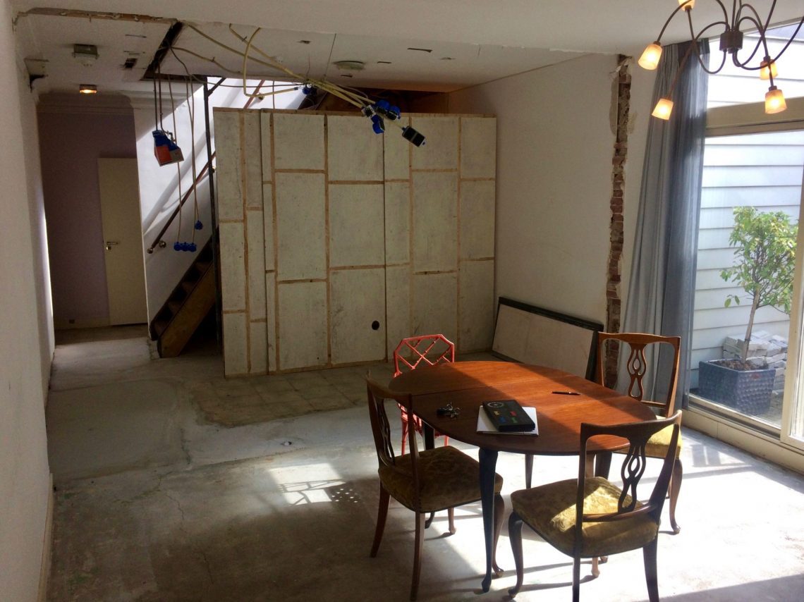 De afgelopen dagen ben ik elke dag bezig geweest met de keukenvloer. Een beetje beton hier, een beetje egalisatiemortel daar, want de geschiedenis van de verschillende kamertjes had ervoor gezorgd dat er heel veel verschillende hoogtes in de vloer te vinden waren.