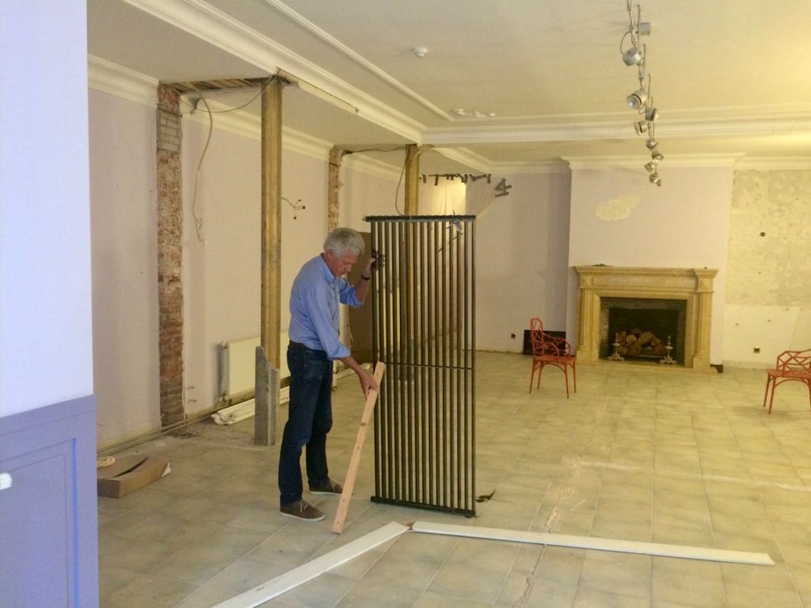 We gingen aan de slag met een oude radiator, houtjes en een wasbak, om de scheiding na te bootsen en gingen vervolgens overal zitten om te voelen ‘hoe zo’n wand voelt’. Het voelen van een dergelijke wand is best lastig. Gelukkig kan Hessel het vanavond in 3D tekenen, want we moeten het niet enkel voelen, we moeten het ‘weten’. To be continued.