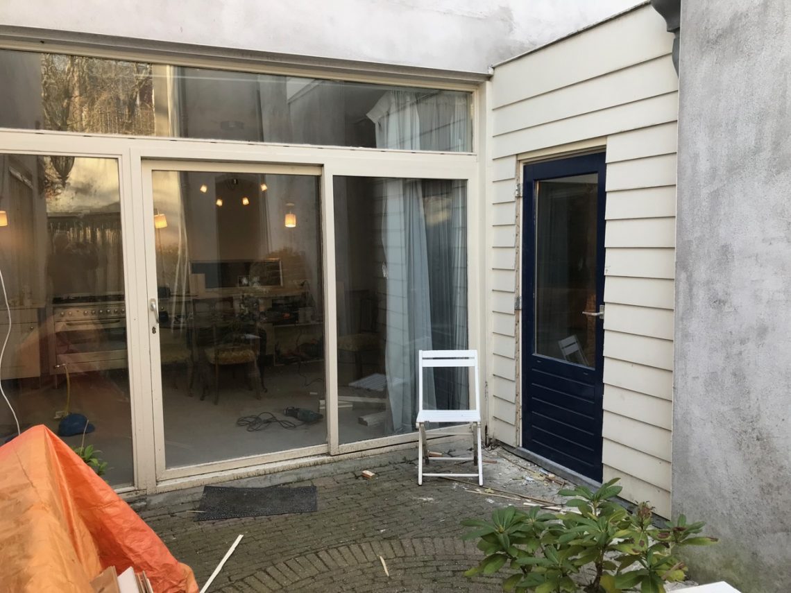 Ik had eerder op de ochtend het kozijn al op maat gemaakt en verlijmd, dat kon van binnenuit in het gat gestoken worden.