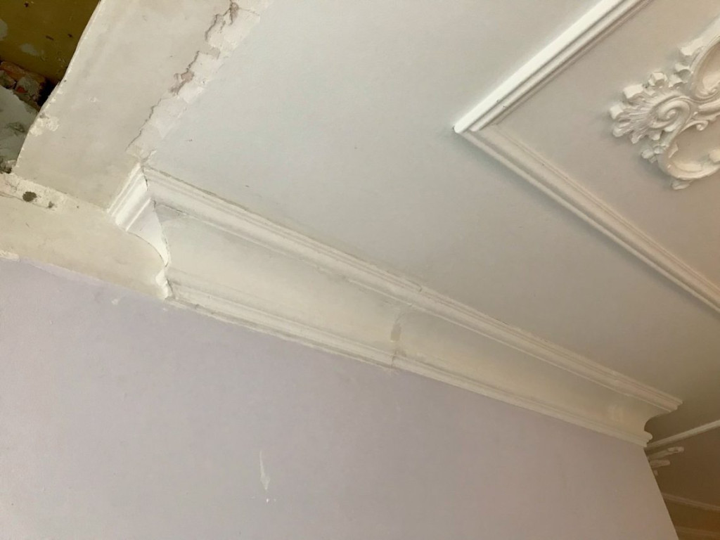 Daarna ben ik aan de gipsen plafond ornamenten begonnen. Ik had daar nog geen echte ervaring mee, dus in het begin was het een beetje puzzelen wat er het beste zou werken. Er zijn talloze soorten Kit op de markt. Vrijwel elke kit lijmt als de beste, maar nou juist geen gips. Behalve dan High Tack van Zwaluw