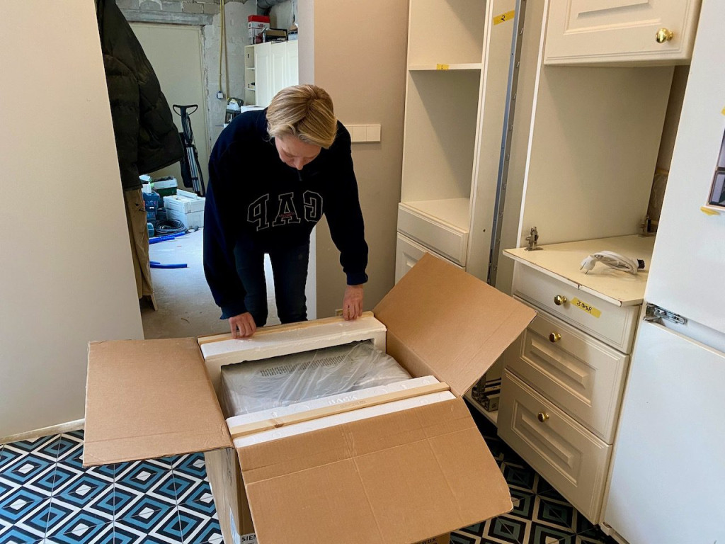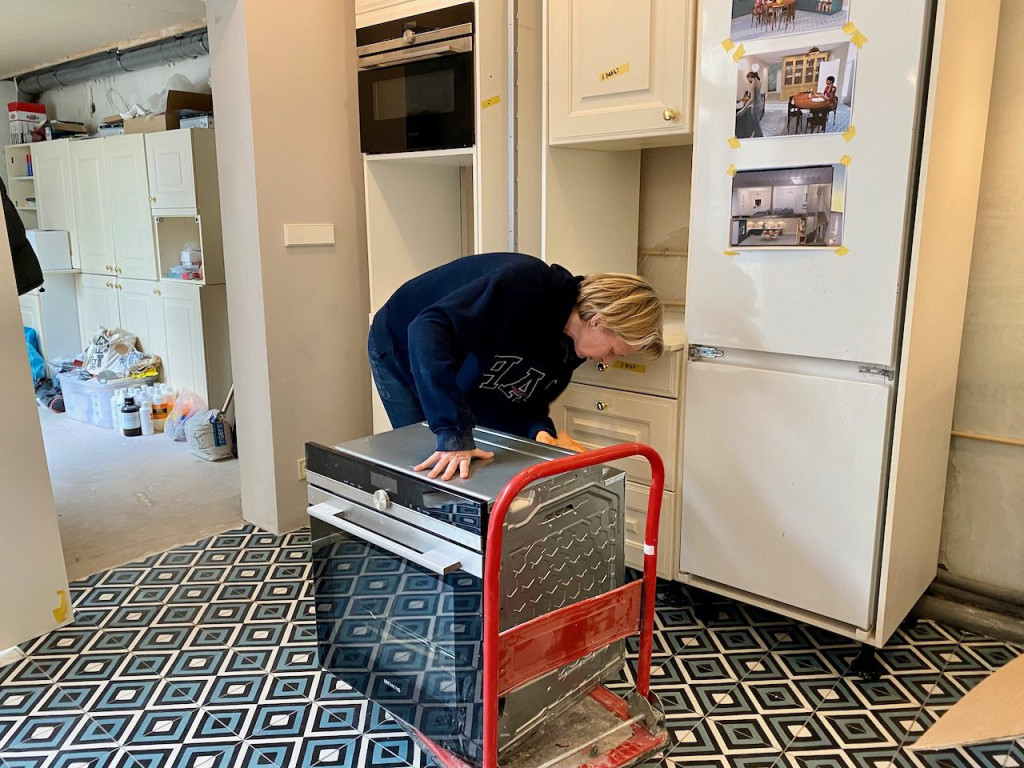 Langzaam maar zeker werd onze keuken weer van onszelf. We gingen zelfs de magnetron en de oven echt in de kast zetten, zodat die niet meer in de weg staan.