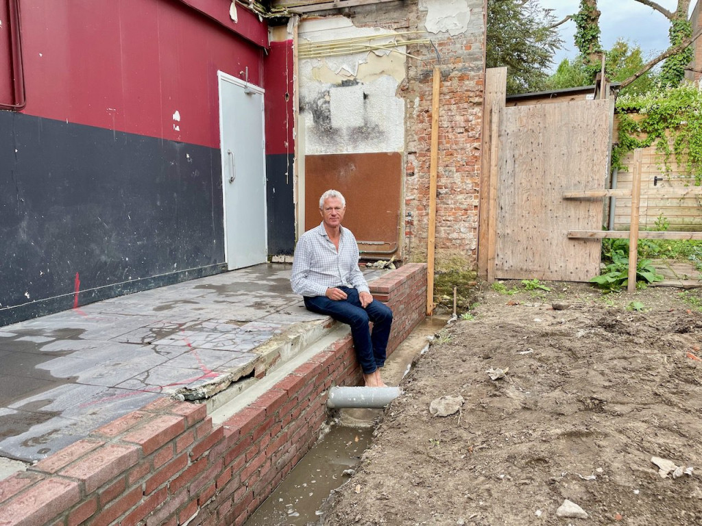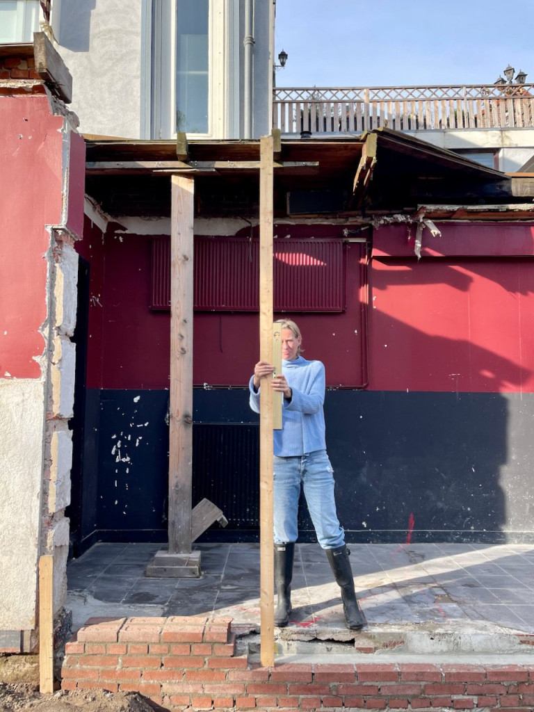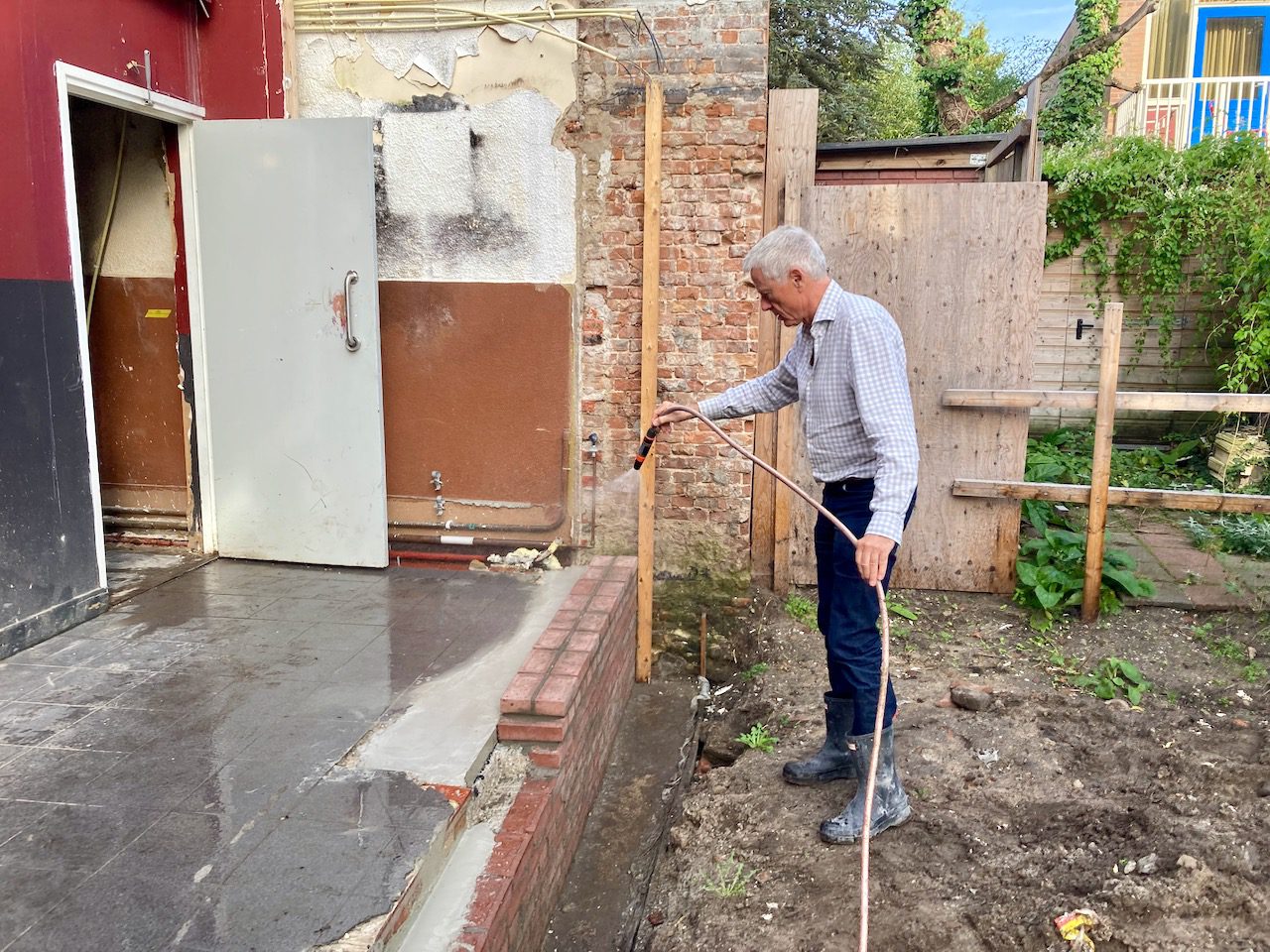 Yes, het is echt helemaal klaar. Hessel heeft deze week het muurtje verder opgemetseld zodat het exact de hoogte van de vloer heeft. Vervolgens is op de laatste plekken beton gegoten. Met daarbij de uitsparing voor het staal. Daarna is de hele werkruimte opgeruimd en schoongemaakt zoals een operatiekamer in een ziekenhuis.