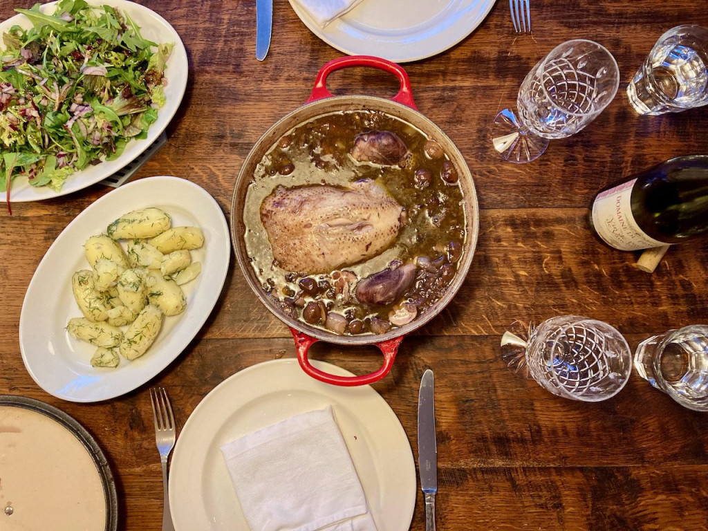 Vrijdag was ik op mijn manier ook lekker bezig. We hadden van het feestje vorige week nog aangebroken wijn over. Wat te doen want we drinken zelf amper meer. Een Cocq au vin bleek de oplossing. We hadden helemaal een klassieke maaltijd. Kijk nu toch eens naar die kleine knietjes van die kip. Ook zielig. Maar zij is wel feestelijk aan haar eind gekomen. Daarnaast kocht ik bij Mabroek maar liefst zes puntpaprika’s. Ook omdat het zo mooi staat, maar ook vanwege mijn nieuwe kookboek. Alles is even bijzonder! Het is niet heel handig als je een betrekking buiten de deur hebt met dit boek, daarom kook ik dit weekend alvast vooruit.