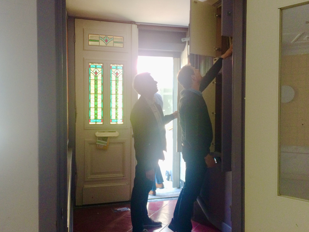 We hadden een huis met een vreselijk lelijke lila kastenwand in de hal gekocht. Samen met de makelaars onderzochten we die dag wat er in de kast zou zitten.