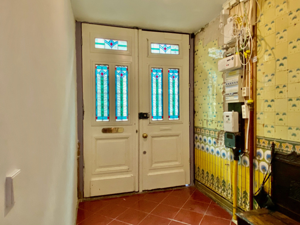 Nu, na onze verhuizing, ziet de hal er al een stuk beter uit. Maar hij is nog lang niet af. Hij krijgt nog een nieuwe vloer, de buitendeur wordt nog geschilderd, er komt een andere woonkamerdeur in en binnenkort wordt eindelijk de museale tegelwand gerestaureerd.