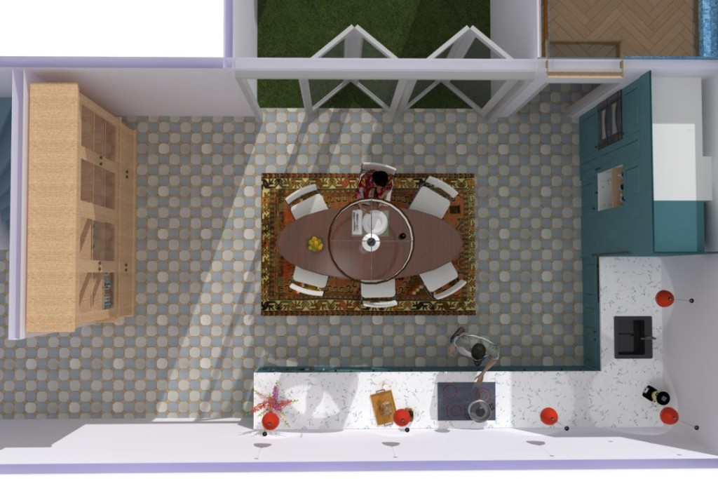 We gaan een keuken bouwen. Volgens de laatste inzichten wordt hij gezellig, praktisch, en ruim van opzet, zodat hij als stempelpost veel bezoekers tegelijk kan ontvangen.