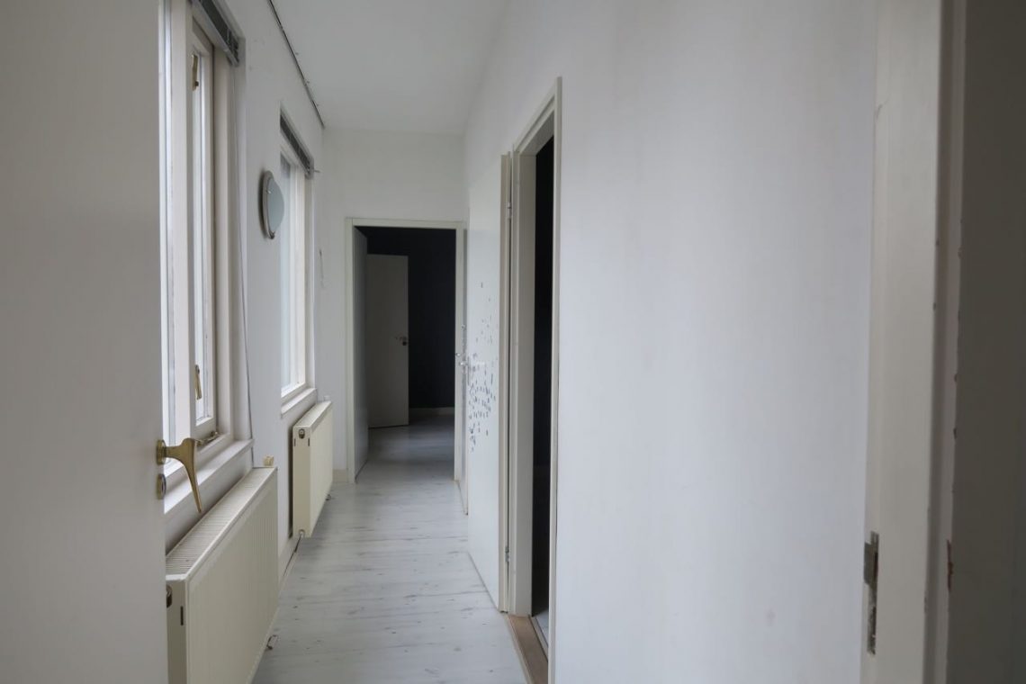 En ergens volgend jaar, dan hakken we een gat in de kopse kant van de gang, maken daar een deur, plaatsen een brandtrap, en dan hebben we een handige toegang tot het toekomstige dakterras.