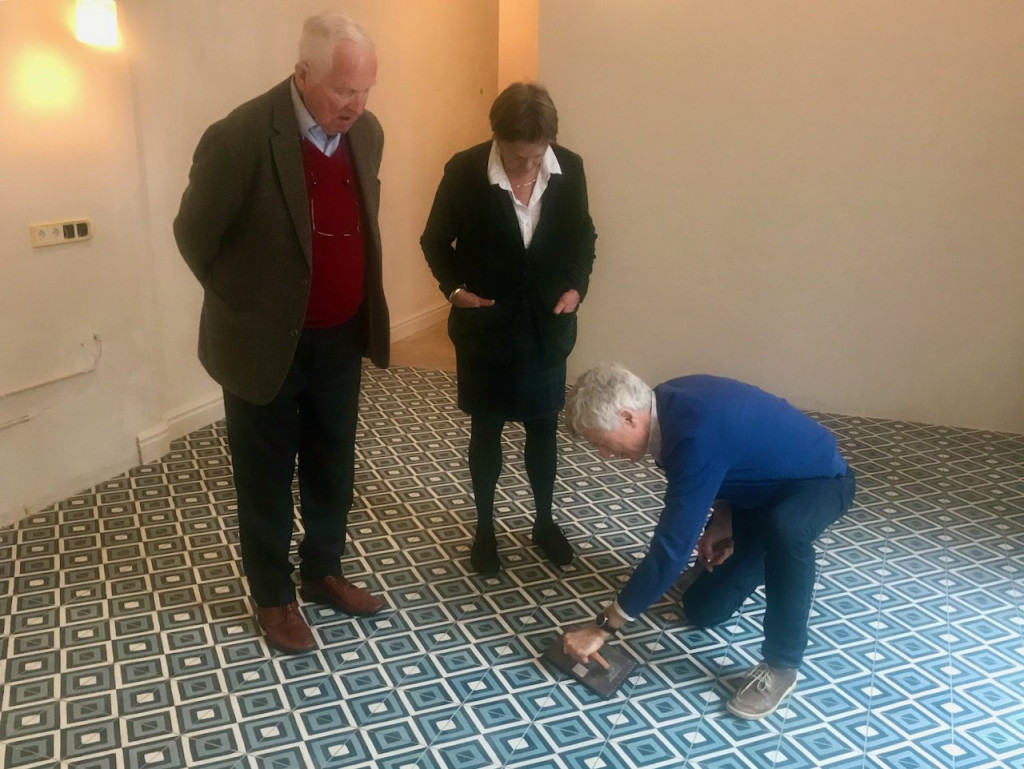Gisteren heeft Hessel in de keuken de laatste voegen gemaakt. Hij belde me op en zei “dit is een historisch telefoontje, want het aller aller grootste werk zit er nu op”. Snel maakte ik een foto.