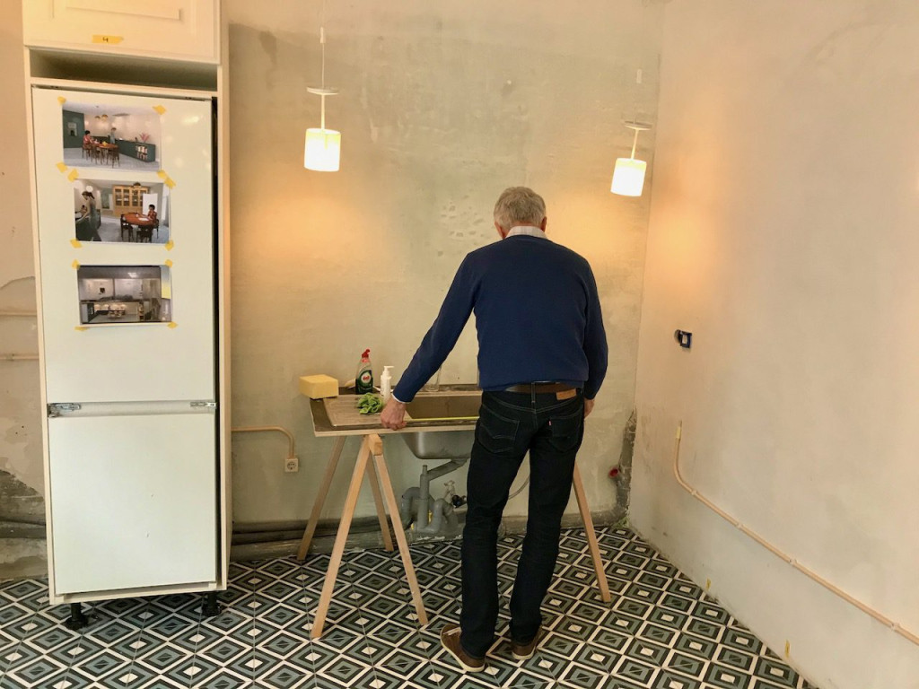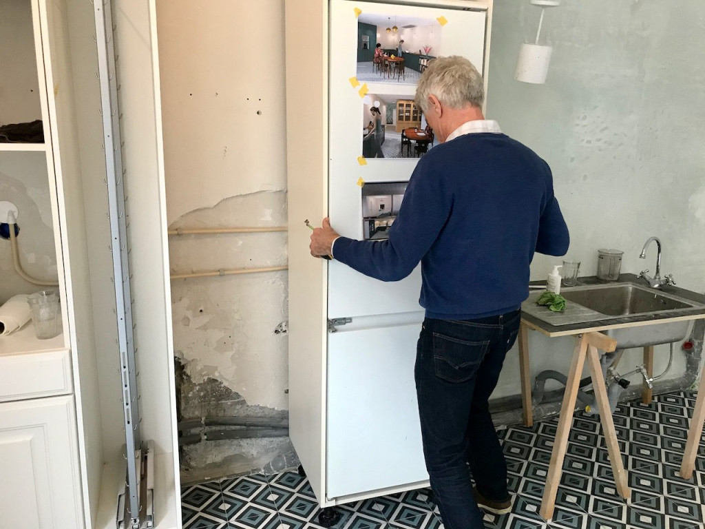 Maar eerst moesten we in de keuken nog een keer exact bepalen hoever de keukenkasten uit elkaar komen te staan.