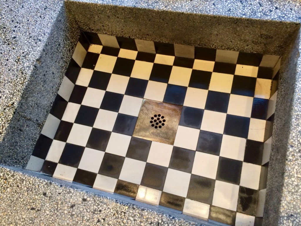 Ik was net begonnen met het inlijmen van de nieuwe tegels, toen er aangebeld werd. Anneke’s moeder kwam even langs, met mevrouw Heule, die ook Anneke bleek te heten. Dat was een tikkie spannend, want de lijm was onder mijn handen aan het opdrogen, ik moest noodgedwongen doorgaan met inlijmen, en kon dus geen rondleiding geven. Gelukkig wist Annekes moeder raad. Je kunt al geen betere treffen voor een rondleiding door Nederlands musea, ze blijkt ook tijdens verbouwingen een volleerde gids te zijn. Op het moment dat ik haar de verftechniek van de zoldervloer hoorde bespreken, zat de laatste tegel er in.