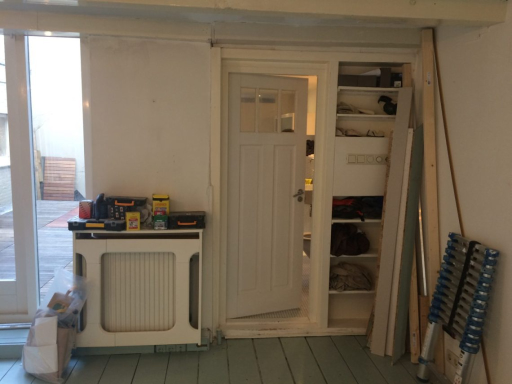 Terwijl ik in de badkamer bezig was, lakte Hessel het houtwerk van de voorkamer boven af. Wij zijn een beetje bang dat ons blog vrij saai wordt omdat we zoveel kleine dingetjes doen, maar kennelijk vinden sommige mensen het nog steeds interessant genoeg om zelfs fysiek langs te komen.