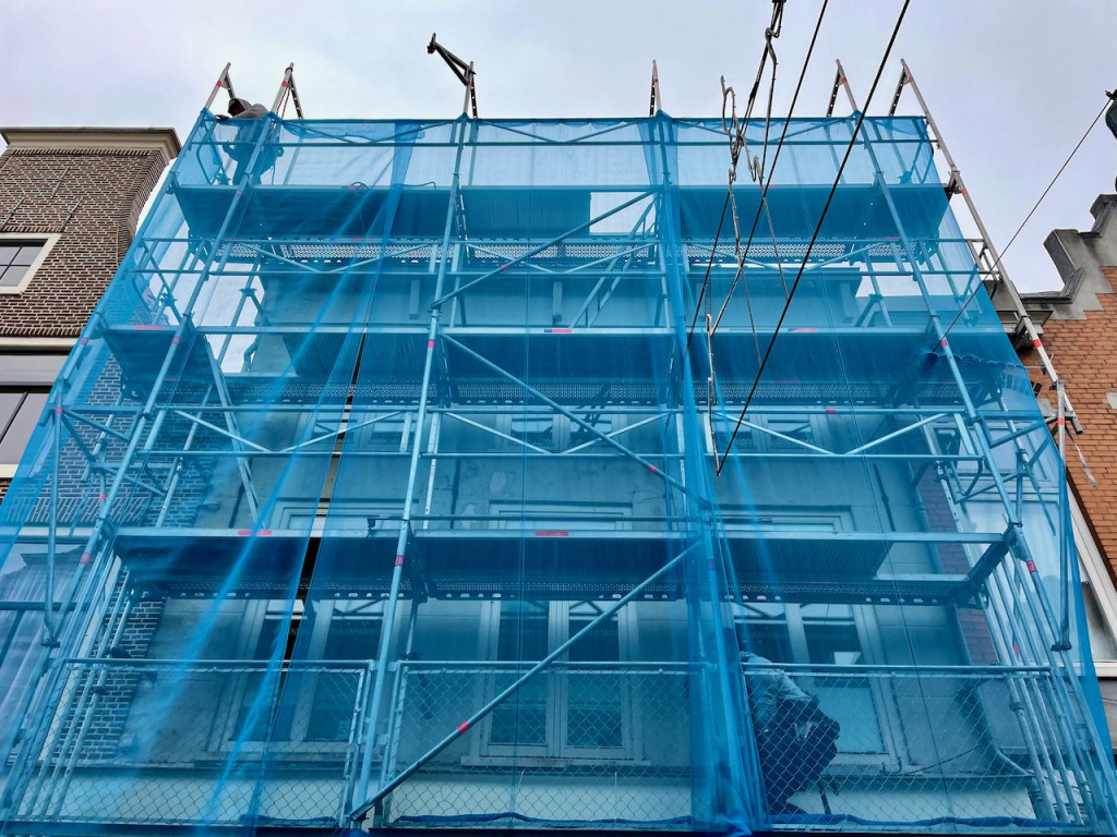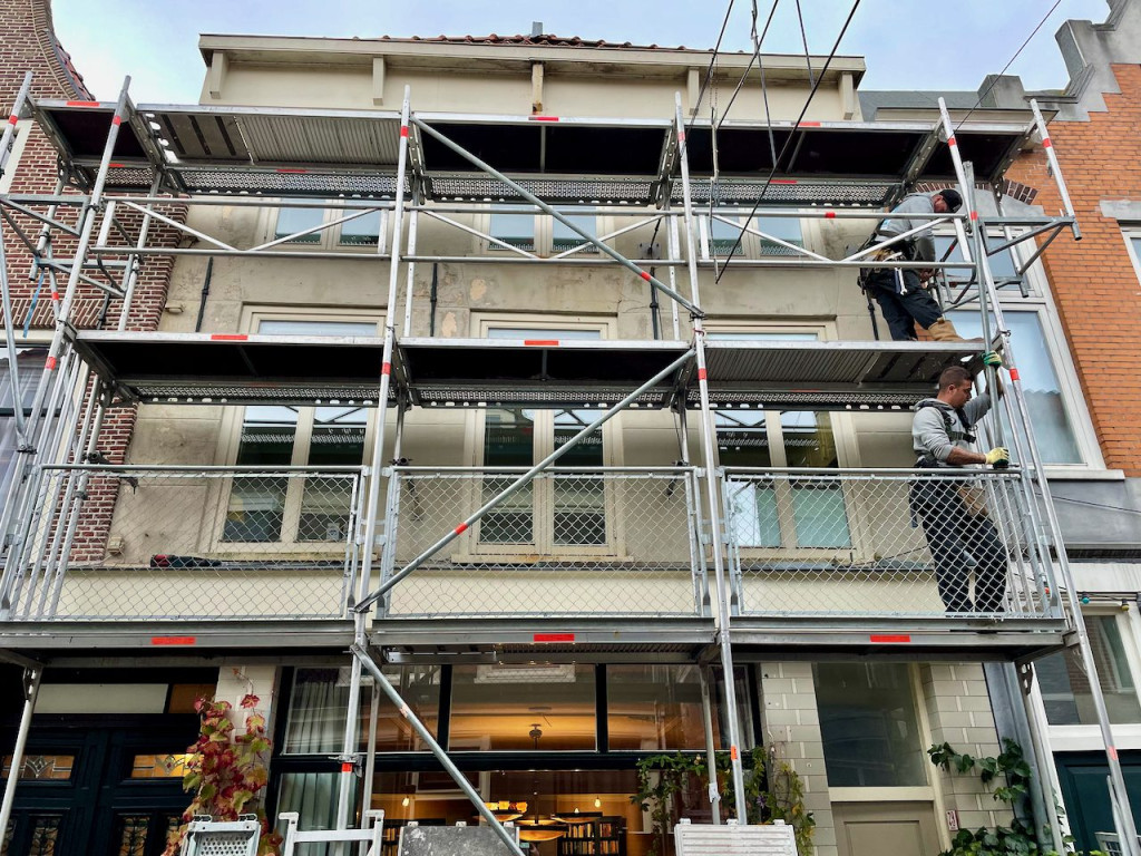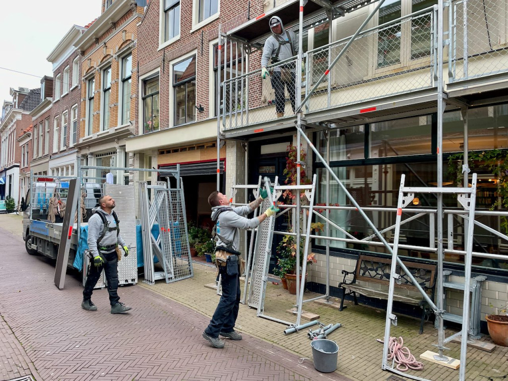 De aannemer komt om de aan de andere zijdes van 79 rood nieuwe dakgoten te maken plus de rare dakgoot die gek genoeg in het pand van Mel zit goed te maken.