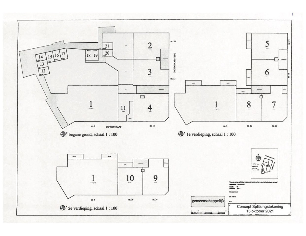 Het moeilijkste van alles wat er loopt is toch eigenlijk wel de aankoop van het stukje grond van Ymere. U weet wel, het steegje achter het theater, waarvan we een gedeelte bij de toekomstige achtertuin willen voegen. Hessel had 1 vergadering gehad (kosten 350,- ex BTW) en de uitkomst van die vergadering was, dat de mensen van Ymere, die de vergadering hadden belegd, vonden dat niet alle info duidelijk was. Dus lang verhaal kort: er moest nog een vergadering komen, waarvoor ook weer 350,- betaald moest worden. Hessel checkte tevoren of alle informatie dan nu wel compleet zou zijn, maar Ymere kan niet anders dan dit in het midden laten. Het zou tijdens of na de vergadering blijken. En zo schoof Hessel van het kastje naar de muur en weer terug. Ondertussen was ook de notaris in stelling gebracht. Er moesten aktes opgesteld worden, en de splitsingsakte kaart kaart moest ook ingetekend worden om de overdracht plaats te laten vinden. Dit is iets wat niet veel mensen vaak doen, want niemand lijkt er handigheid in te hebben. Hessel was de hele afgelopen week bij de notaris aan het polsen of het zou lukken. De documenten zouden zeker komen, maar mogelijk was de tekening te laat. Hessel bood direct aan om de tekening zelf te maken. Als we in vredesnaam maar op vrijdag konden indienen. Want vrijdag was de deadline van de VvE Ymere om het voor hun vergadering van november in te brengen.