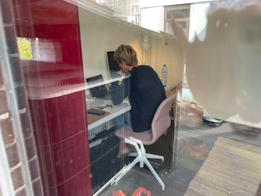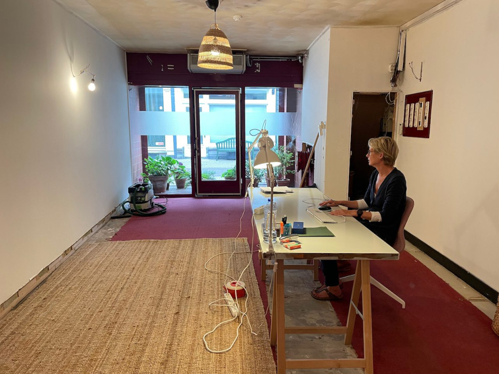 Het bleek daar nogal bedompt en of heel koud of heel warm te zijn. Niet getreurd, er waren nog andere ruimtes in het pand om een werkkamer te maken. Bijvoorbeeld in de voormalige winkel!