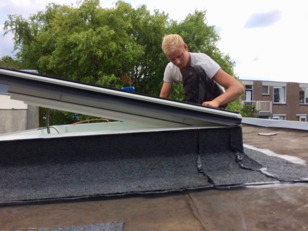 Toen het luik helemaal vast zat, heeft Bart het keurig in bitumen geplakt, zodat het voor altijd waterdicht is.