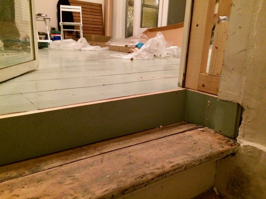 Eigenlijk is er niks aan de hand hoor. De Polen zouden met twee man sterk nog een dagje komen helpen. Mariusz is van beroep timmerman, die ging lekker aan het werk. Als eerste timmerde hij een nieuw frame voor de deur boven aan de trap.