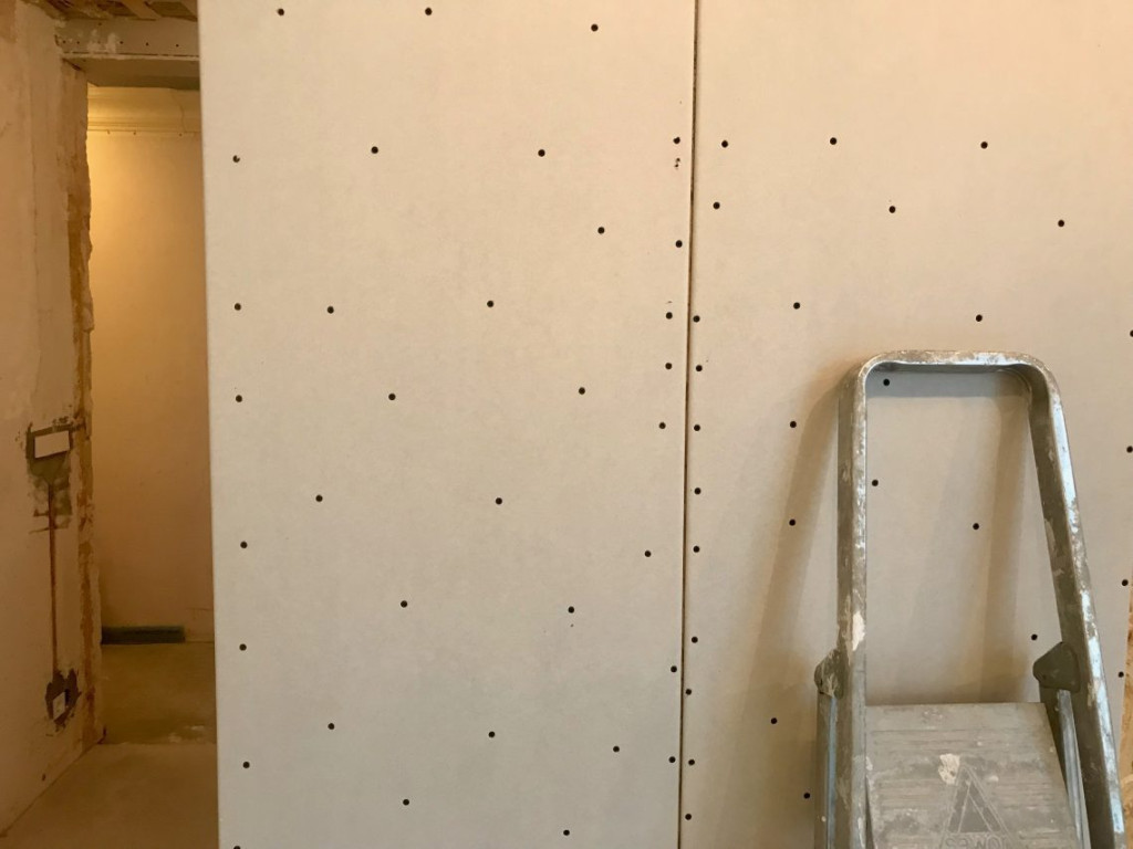 Ik heb die muur vandaag afgemaakt. OSB tot het eind, nog meer gipsplaten, stopcontactje voor je weet maar nooit naast de teakhoutenkast.