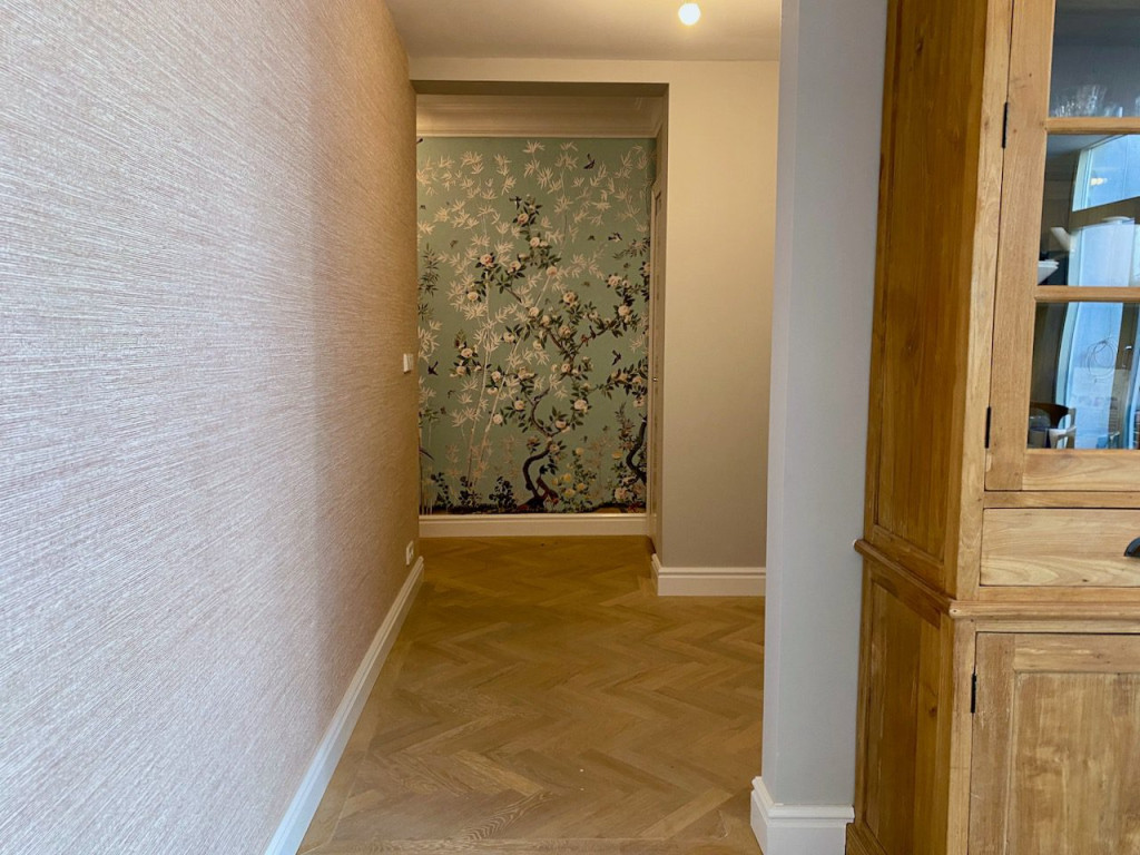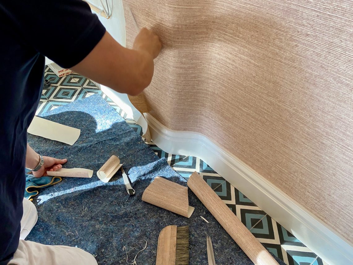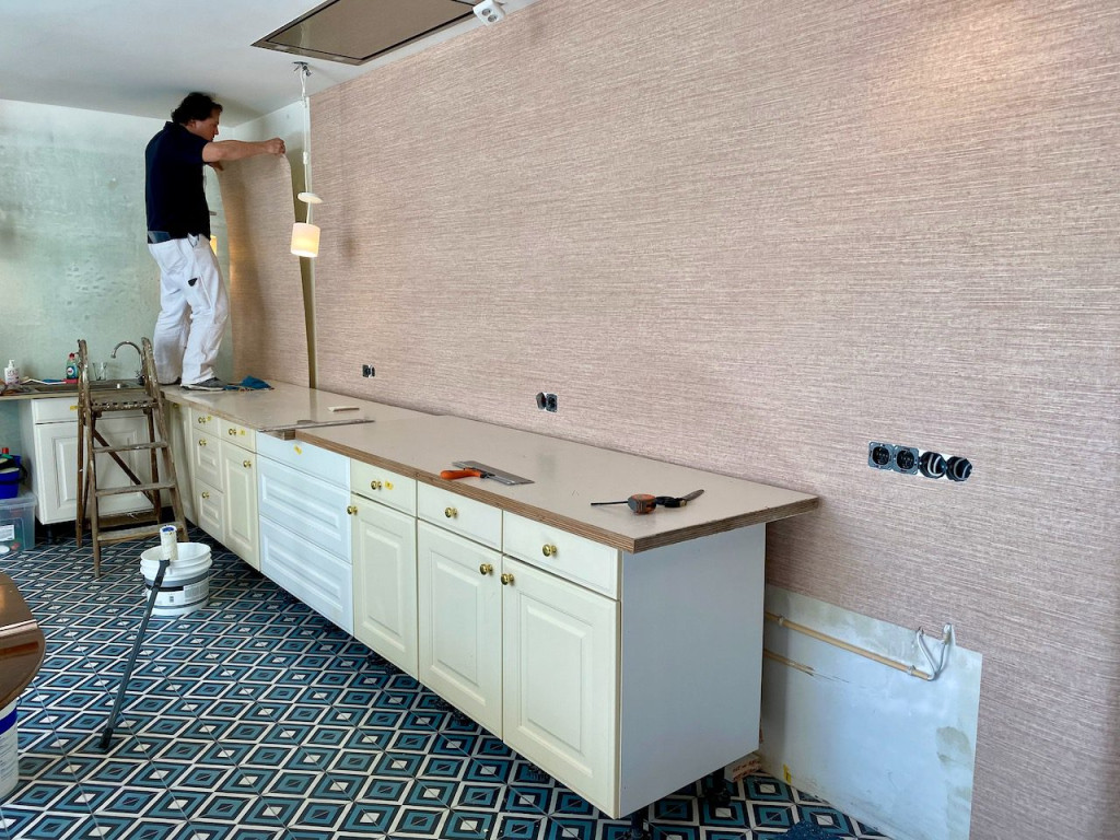 Ik vond het meteen al goed. Het roze behang was de hoek van de gang omgekomen, en verbond nu prachtig de eikenhouten vloer met dekeukentegels.
