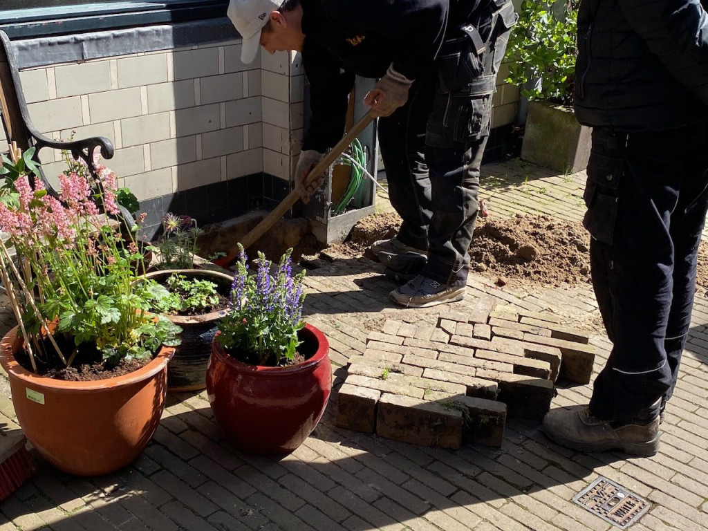 Ze begrepen het probleem, en groeven een kuil. Oei, de hele planten-compositie van Annie door de war.
