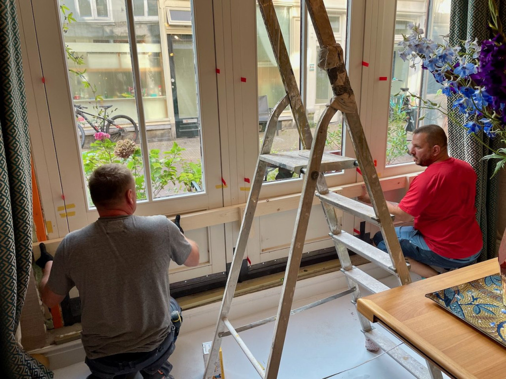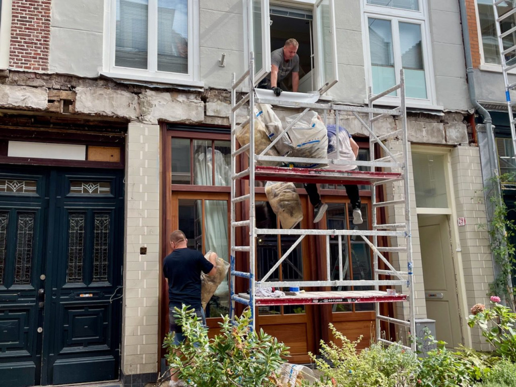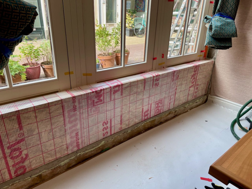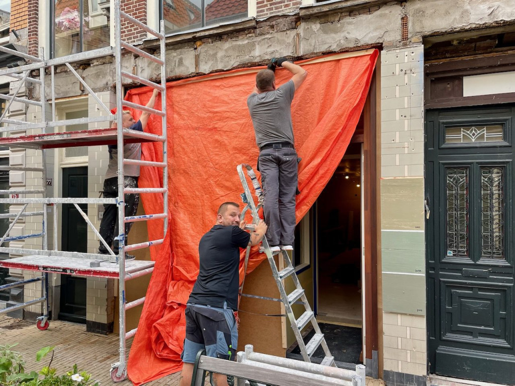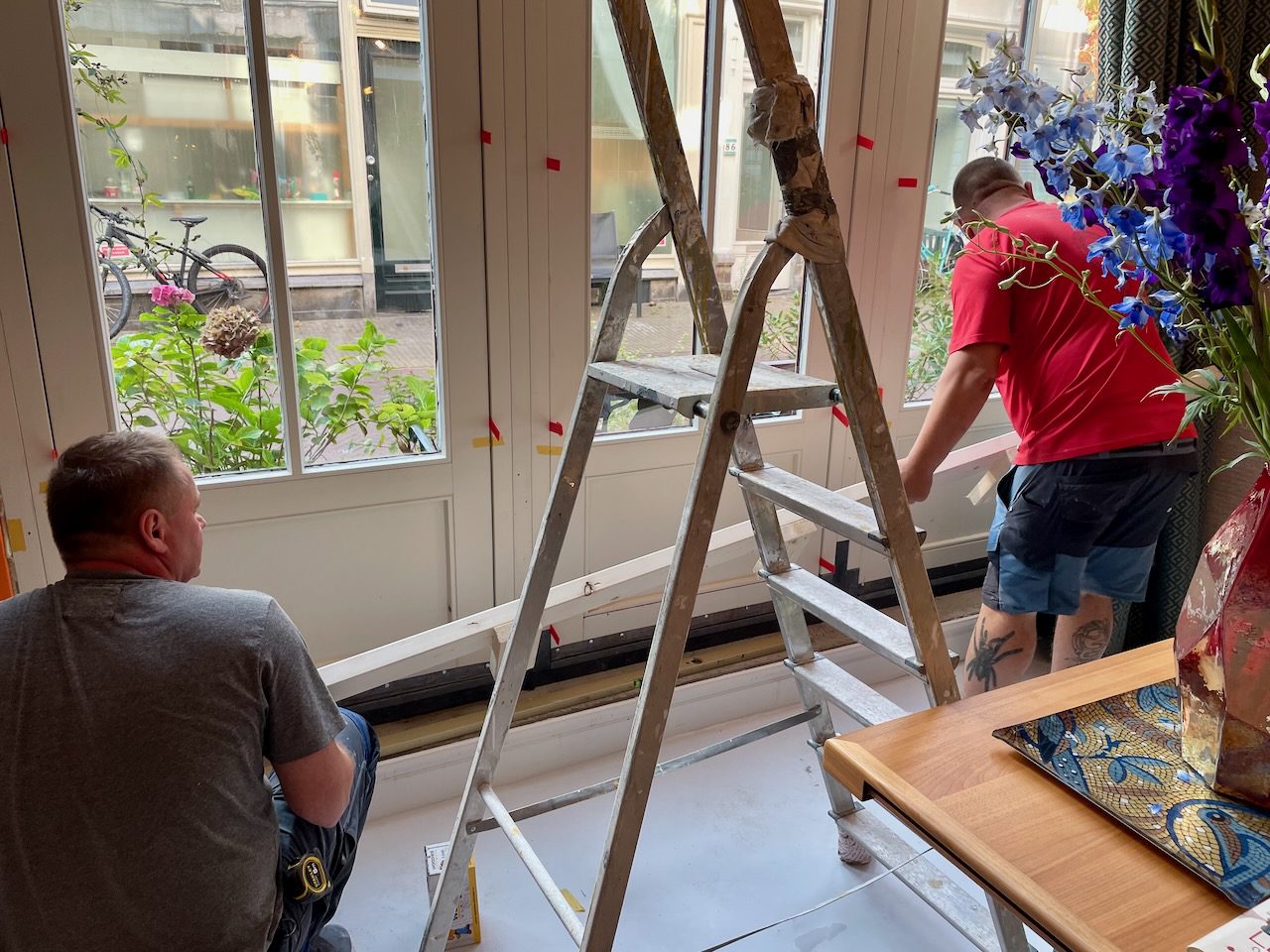 Nu de zomer zo’n beetje voorbij is, worden de handen eens flink uit de mouwen gestoken. Het was zelfs een beetje gênant. In drie huizen tegelijk werd er gewerkt. Geen idee wat de rest van de straat eigenlijk van ons denkt.